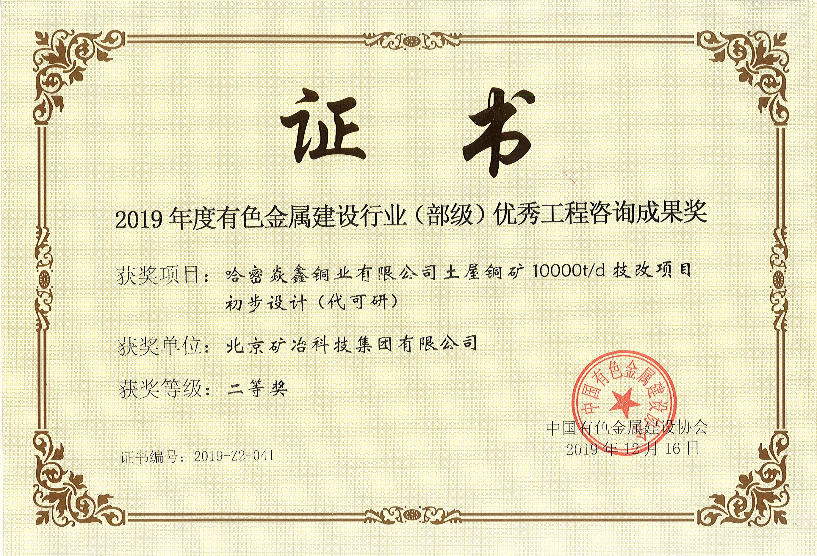 哈密焱鑫铜业有限公司土屋铜矿10000td技改项目初步设计(代可研)二...